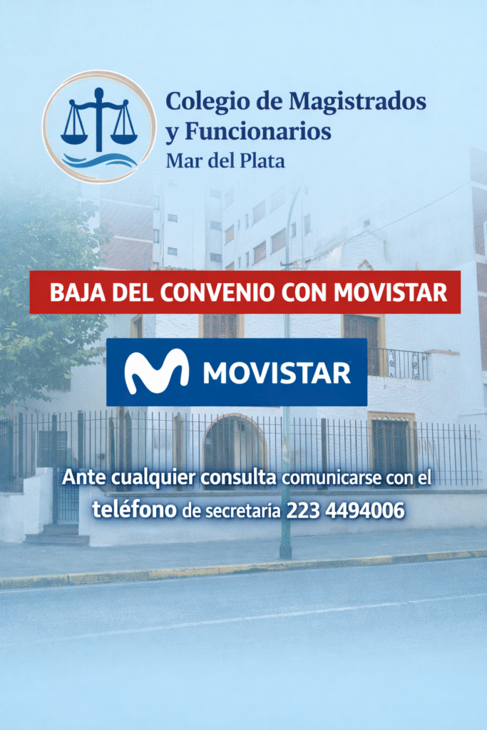 Nos dirigimos a ustedes a fin de informar que, como consecuencia de reiterados y significativos inconvenientes administrativos en el servicio brindado por la empresa Movistar, así como de nuevas exigencias operativas impuestas por dicha firma —consistentes en la asignación de recursos humanos por parte del Colegio para la gestión integral de las líneas, con el consiguiente impacto económico—, el Consejo Directivo ha resuelto disponer la baja del convenio vigente con dicha compañía.